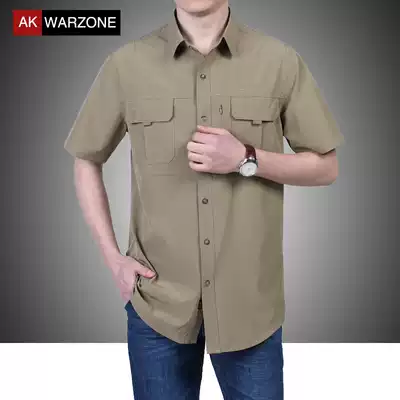 Outdoor quick-drying shirt Men's short-sleeved summer elastic breathable ice silk large size loose waterproof tactical quick-drying shirt