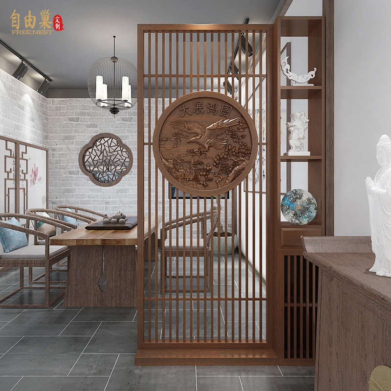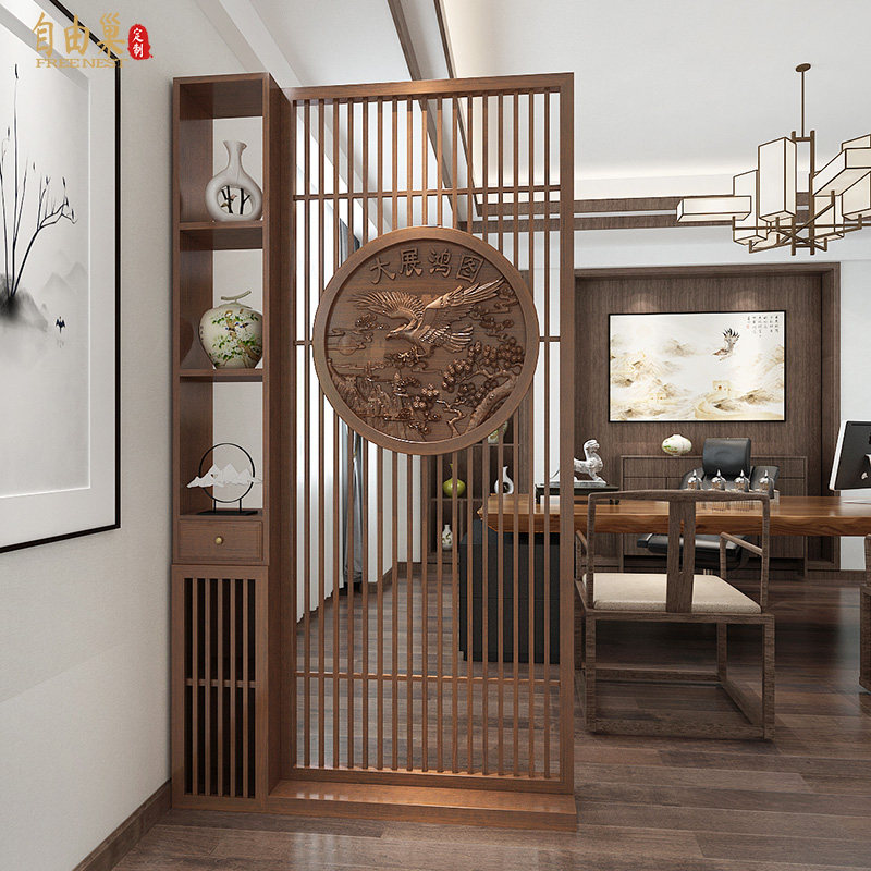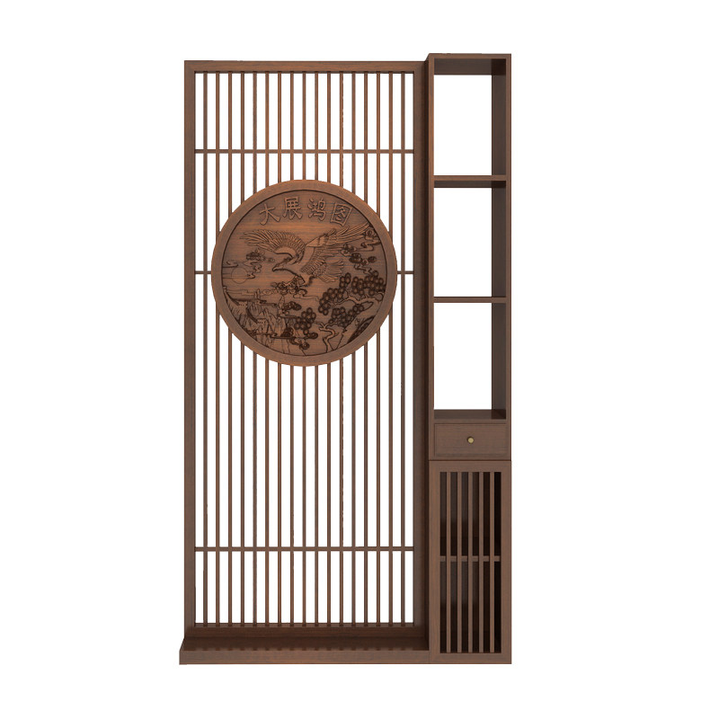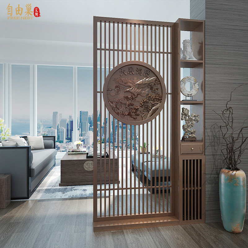 New Chinese style carved hollow screen partition shelf entry porch living room classical lattice small apartment partition wall