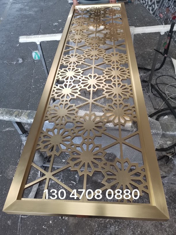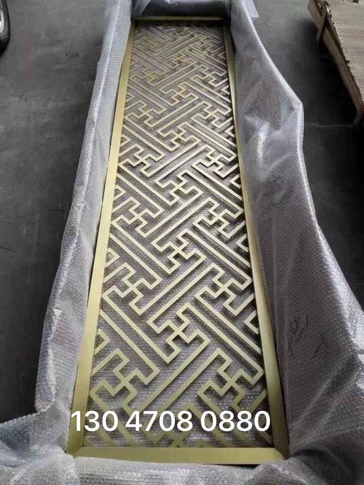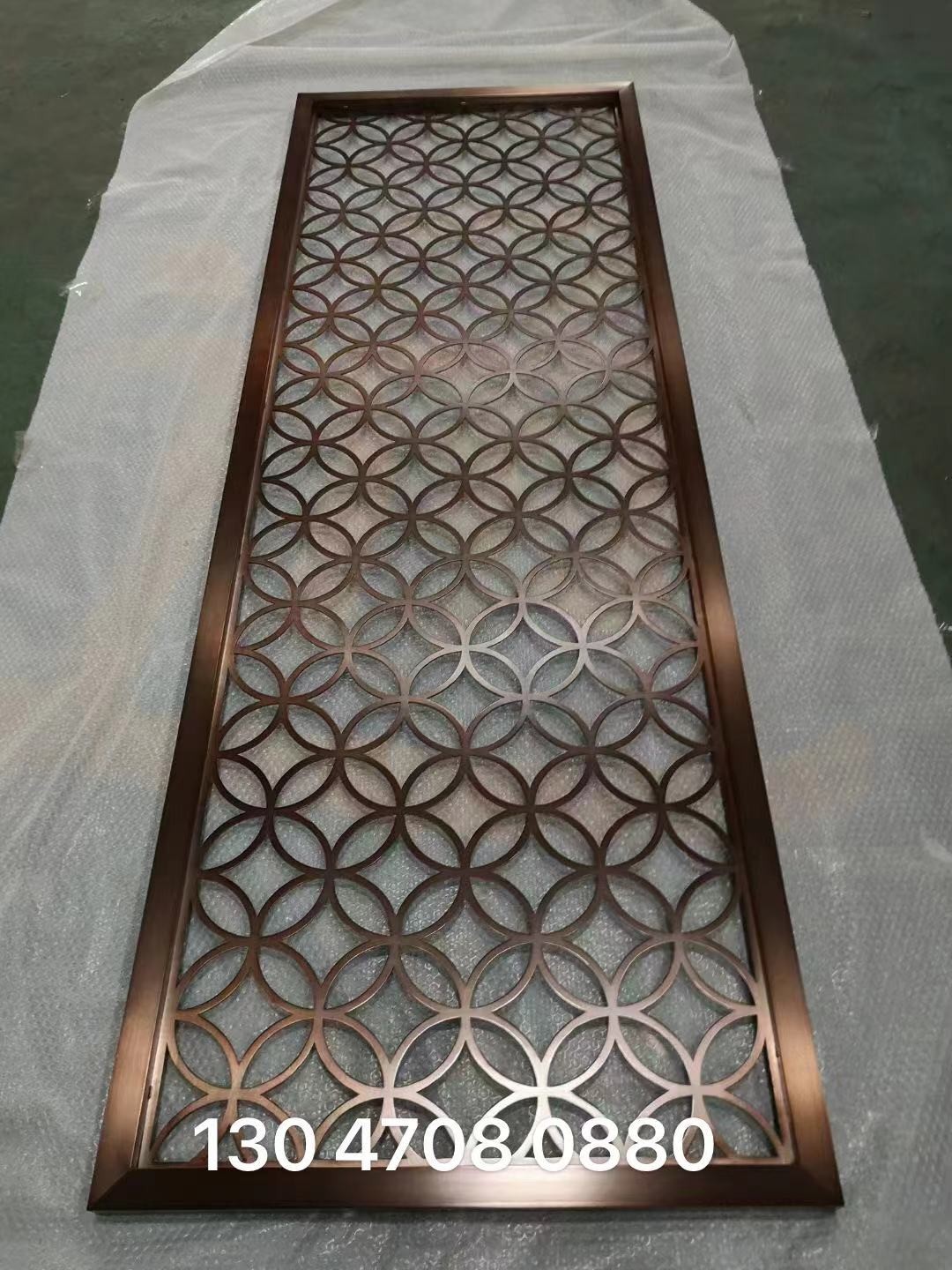 Custom stainless steel screen villa partition titanium fence Shan Nordic style living room entrance cutout background wall
