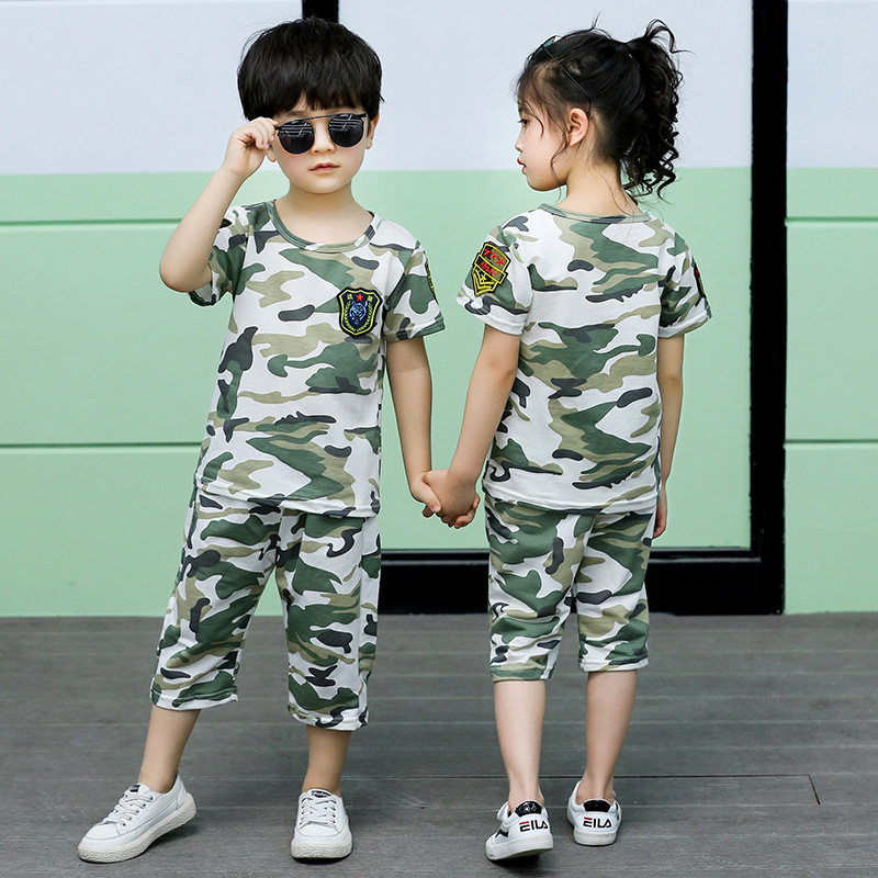 Short-sleeved camouflage suit suit children's clothes children's special forces summer camp military training clothes eating chicken field camouflage clothes
