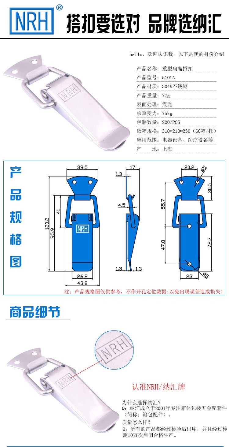 NRH Nahui-5101A Spring Flat Mouth Buckle Industrial Box Buckle Stainless Steel Buckle Buckle Heavy Duty Buckle