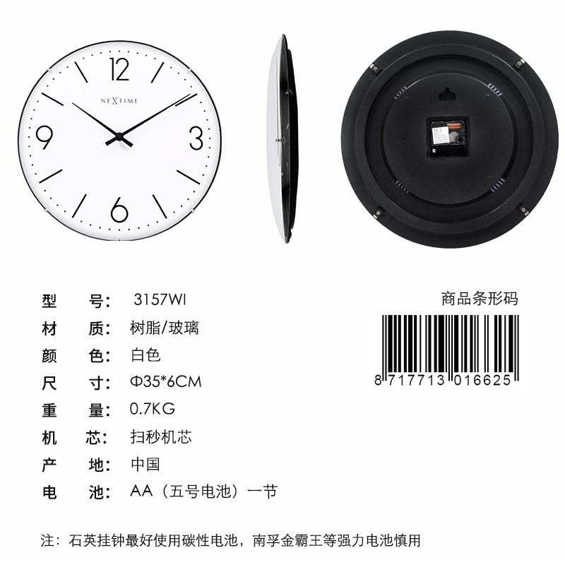 NeXtime Dutch timepiece minimalist Silent Arc glass Living room Bedroom Nordic Wind 14-inch hanging clock