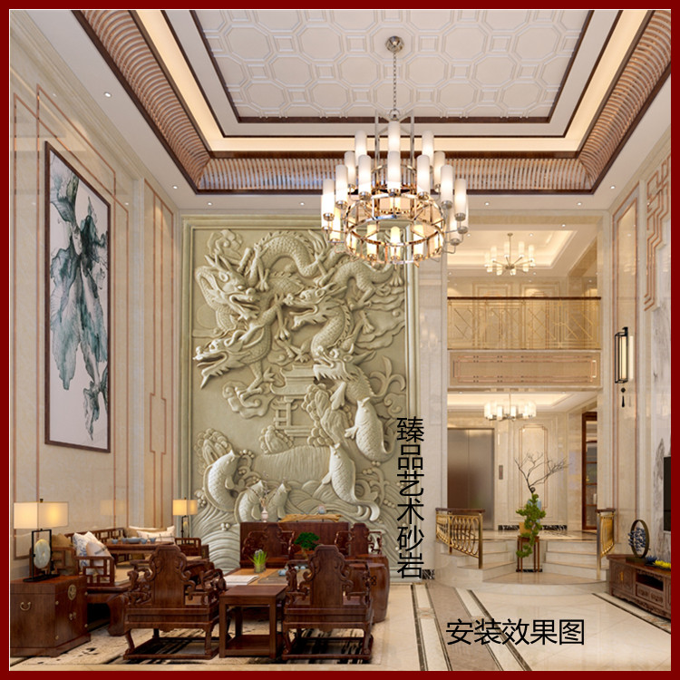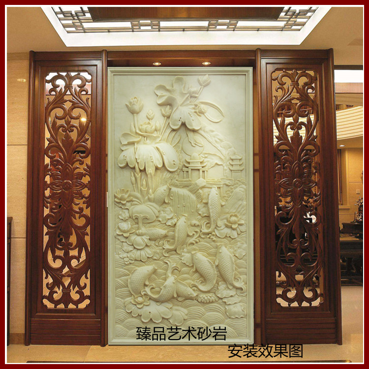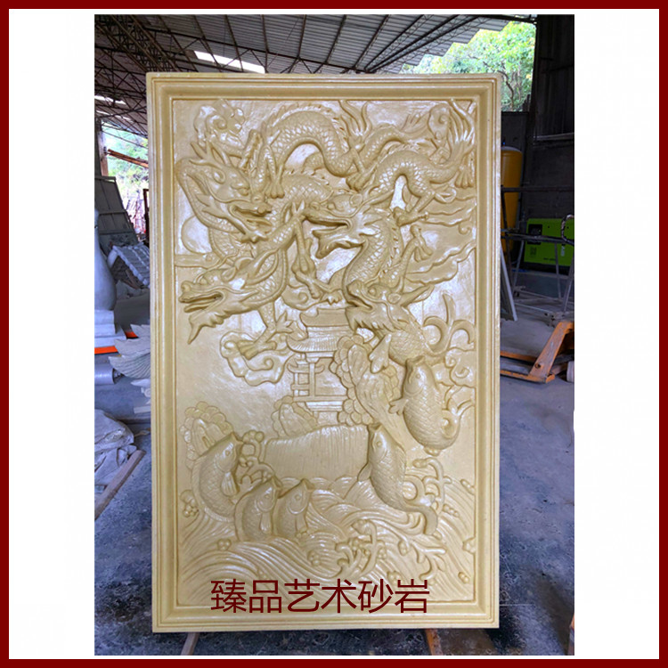 Sandstone relief lotus carp leaping dragon gate sculpture European-style background wall indoor and outdoor villa hotel home decoration decoration painting