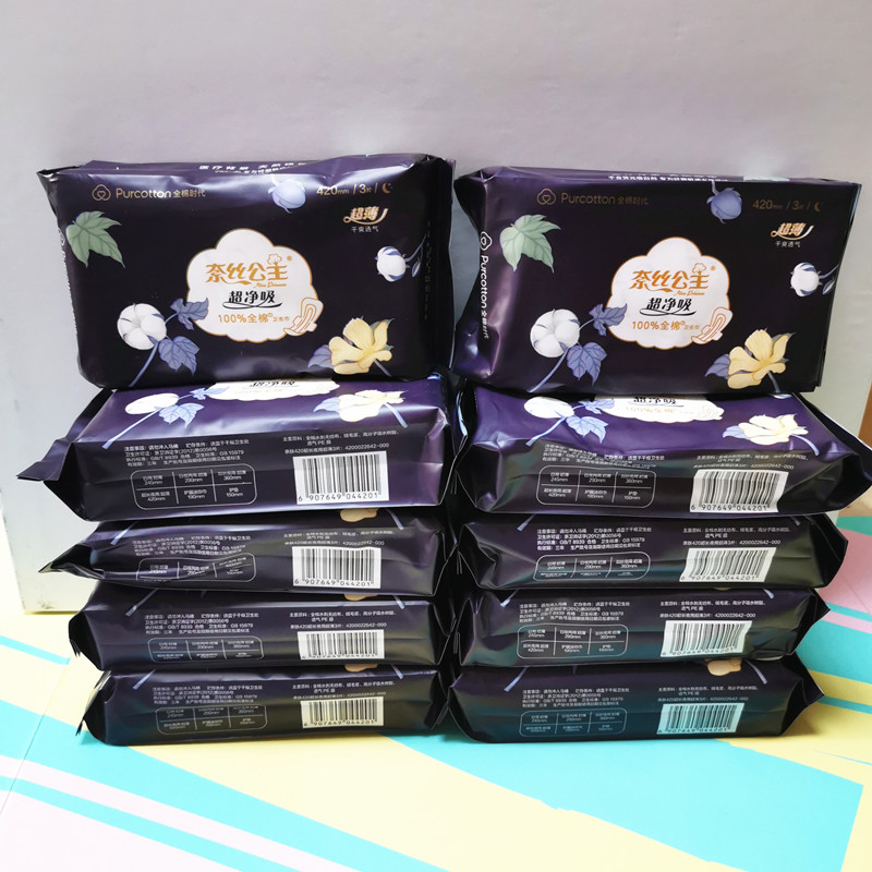 100% cotton era Nass Princess ultra-clean night-sucking sanitary napkin cotton surface ultra-long aunt towel 420mm 10 packs
