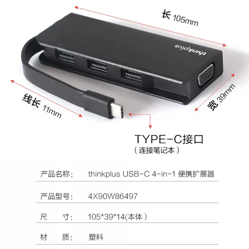 Lenovo thinkplus 4-in-1 portable Type-c extender USB multiport computer VGA notebook 4X90W86497 small new Dell all-in-one hub hub