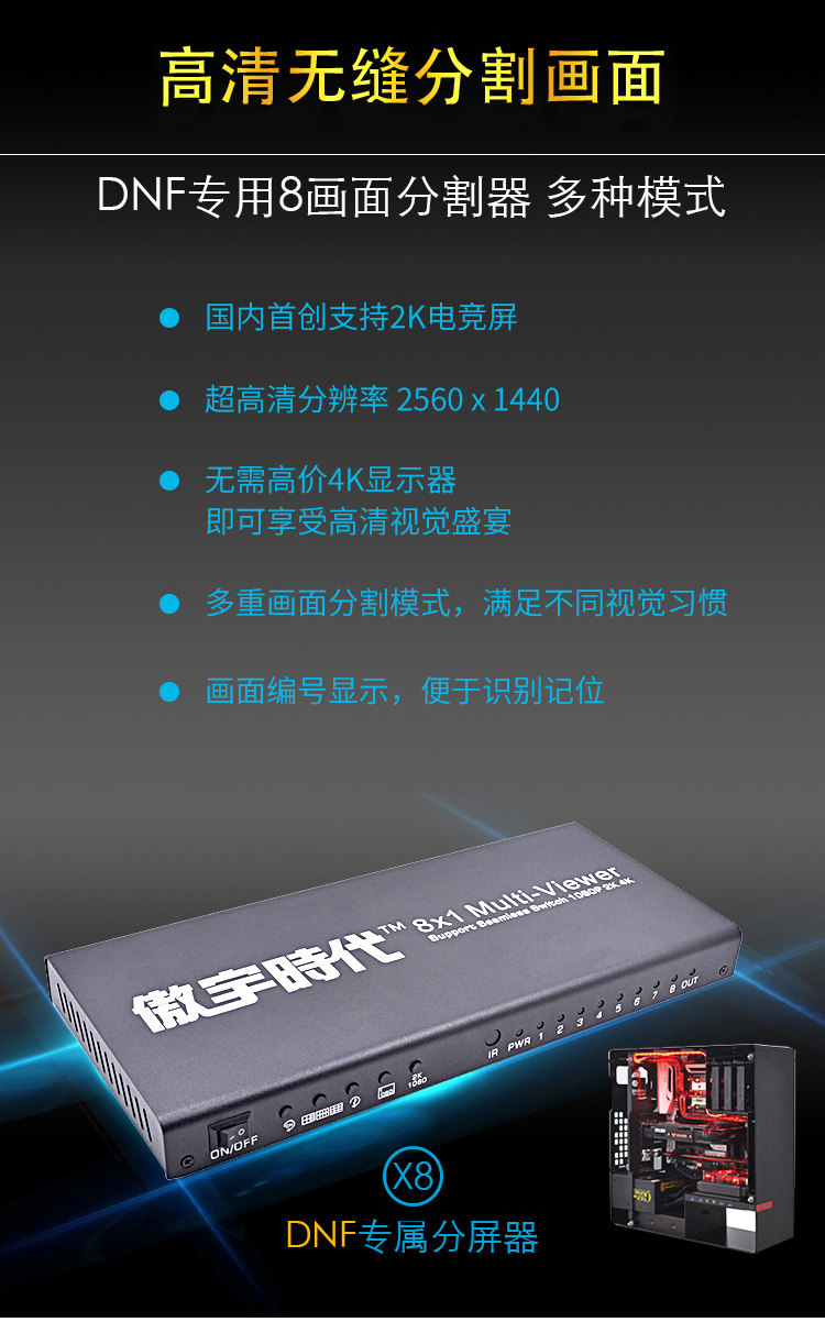 2k Aoyu era 4 mouth 8 mouth screen hdmi screen splitter eight in one out of the dungeon moving bricks more than 8 splitter