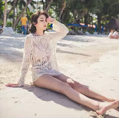 European and American casual hollow lace knitted beach blouse sunscreen tennis shirt women bikini swimsuit jacket