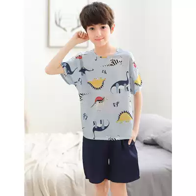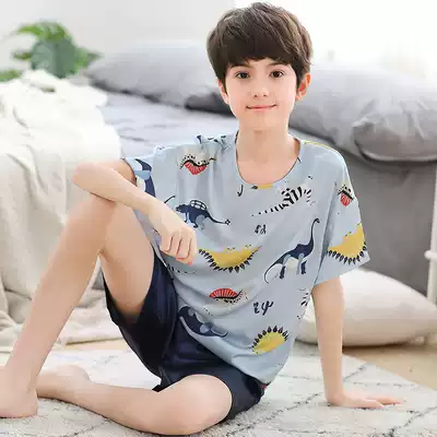 Children's Ice Silk pajamas boys summer thin short sleeve simulation silk dinosaur cartoon big boy home clothes