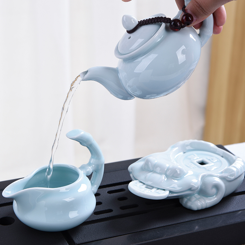 Xi Guest Ceramic Gongfu Tea Set of Creative Toad Tea Set Kiln Green Porcelain Suit Teapot Tea Cup