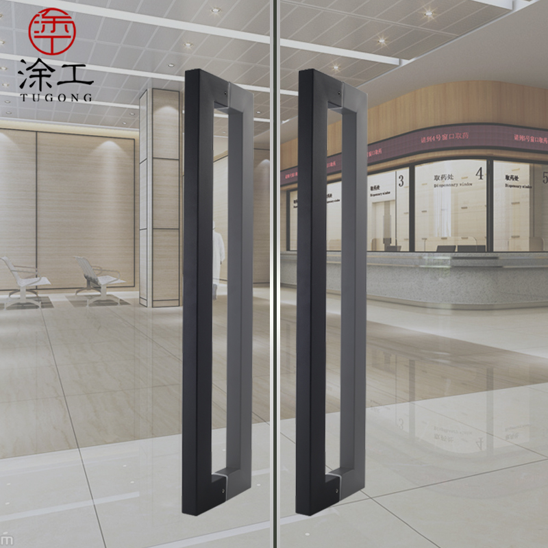 Thickened Glass Door Handle Stainless Steel Handle to Mount Office Push-pull With Frame Door Big Handle Black Bookable