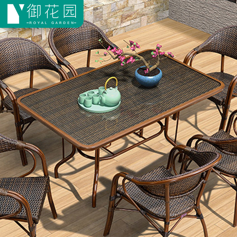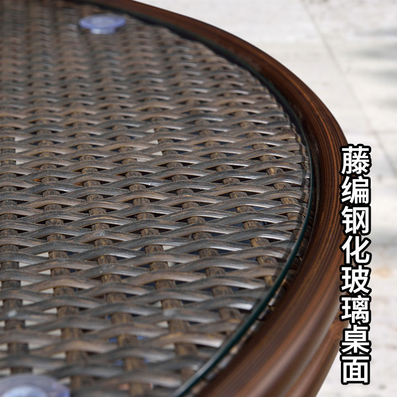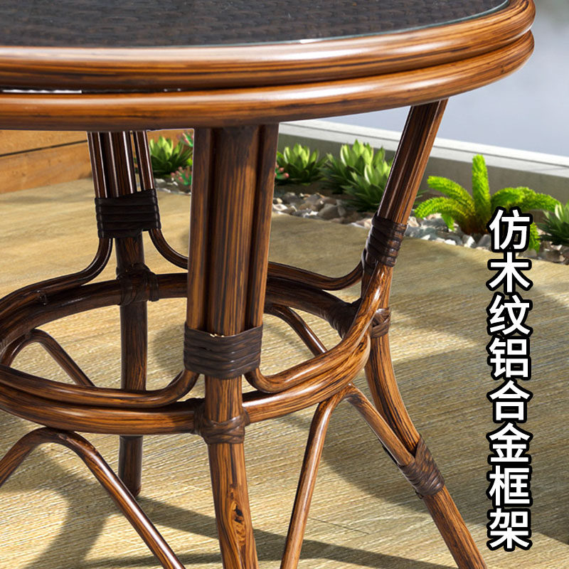 Balcony small tea table tempered glass table leisure aluminum alloy rattan round table simple household small table dining table combination