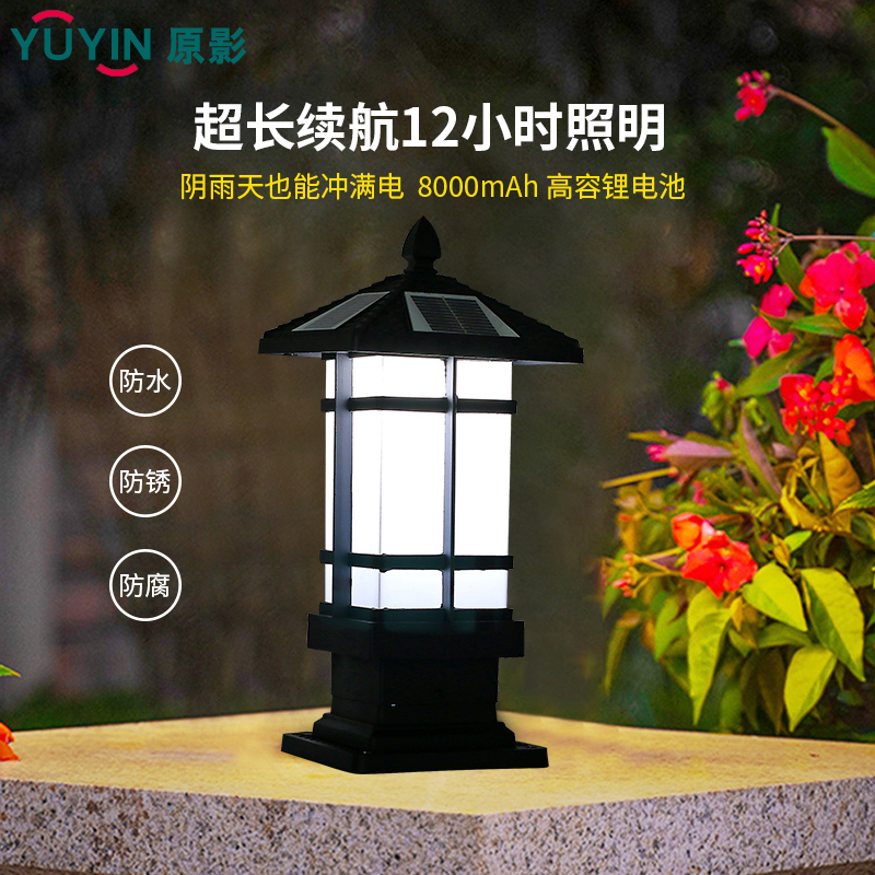 Solar column head lamp outdoor super-bright induction gate column headlights Waterproof Home Garden Villa Courtyard Lamp