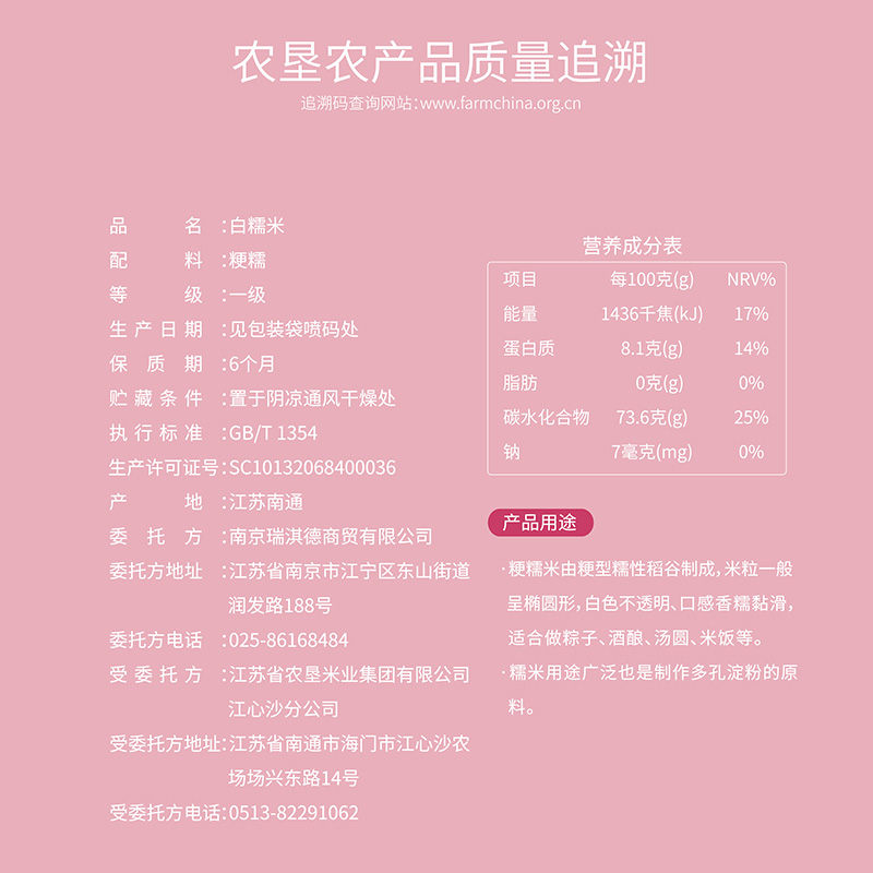 Jiangsu agricultural reclamation rice industry white glutinous rice 5 catty glutinous rice dumplings glutinous rice glutinous rice dumplings glutinous rice glutinous rice sticky rice 2 5kg