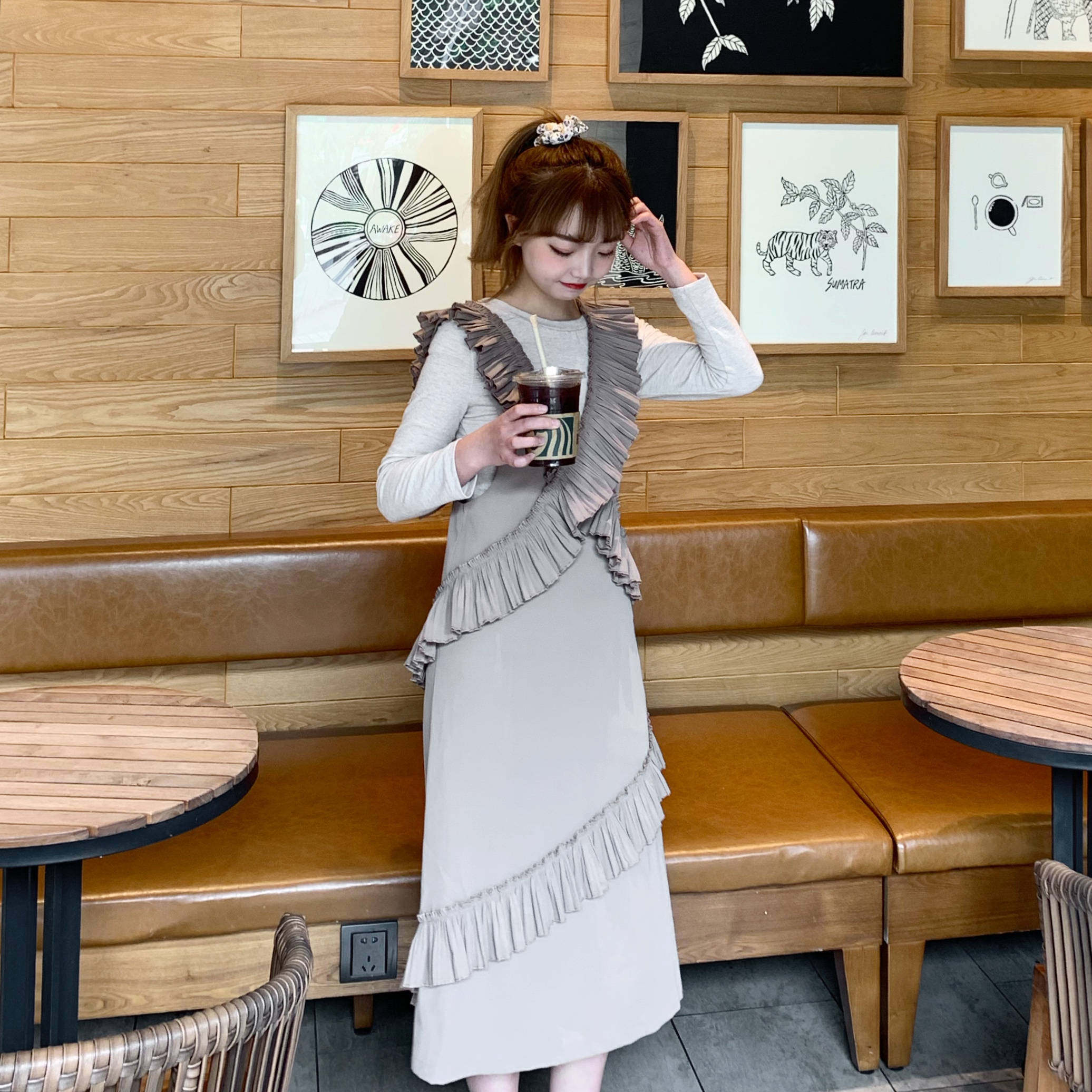 Small retro baby bag dress suit female 2020 new summer V-neck vest skirt long skirt suspender skirt