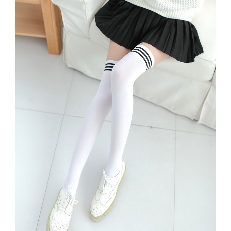 Black striped over knee white (in striped middle cylinder) black (in pure color thigh socks) complexion (pure thighs socks) white (pure thighs socks) black (pure