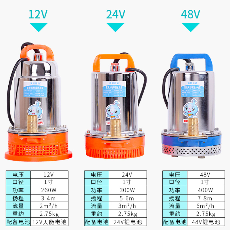 12V submersible pump (bare machine) 24V submersible pump (bare machine) (color appearance random) 48V submersible pump (bare machine) (package 1) Tianneng 12V12AH submersible pump + 10 m canvas tube (set 2) Tianneng 12V12AH submersible pump + 20 m canvas tube (set 3) Tianneng 12V12AH submersible pump + 30m canvas tube (set 4) Tianneng 12V12AH submersible pump + 50m canvas pipe (48V) submersible pump + hard battery + 10m canvas pipe (48V) submersible pump + Hardcore battery + 20m canvas tube (48V) submersible pump + hardcore battery + 30m canvas tube (48V) submersible pump + hardcore battery + 50m canvas tube 48V hardcore lithium battery + charger