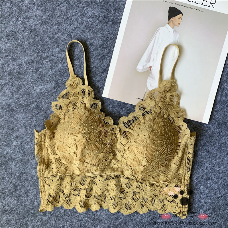Harness Vest Woman With Chest Cushion Inside Hitch Bottom Lace Sexy Hollowed-out Anti-Walk Light Smear Bra Thin underwear