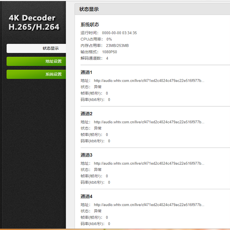 H265 4CH network audio and video decoder hdmi vga cvbs solution 4K surveillance round patrol onvif