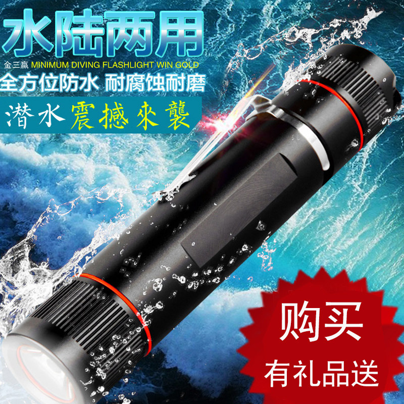 Mini professional diving flashlight Outdoor waterproof LED strong light night ride convenient rechargeable underwater lighting fill light