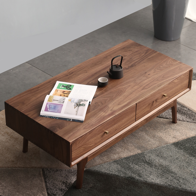 "Three ears" Nordic solid wood coffee table imported black walnut Japanese side cabinet modern minimalist oak small apartment