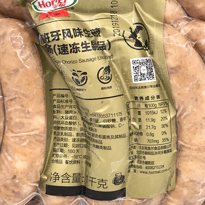 Lotus Spanish flavored raw frying sausage 1kg about 17 grilled pizza barbecue Fried Vegetable Pinch Burger
