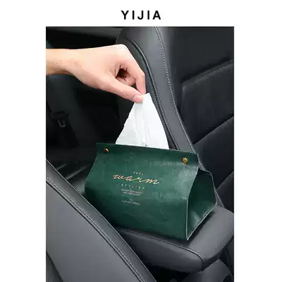 Car tissue bag ins Wind high-grade leather extraction paper towel armrest box center console extraction sanitary paper bag creative household Universal