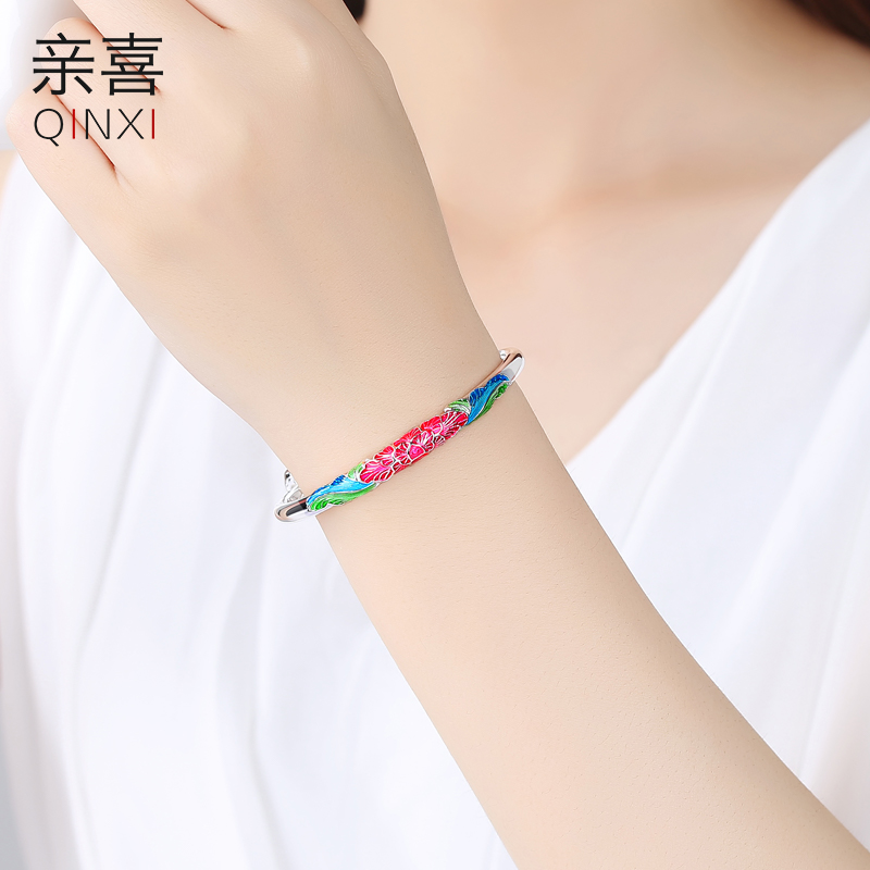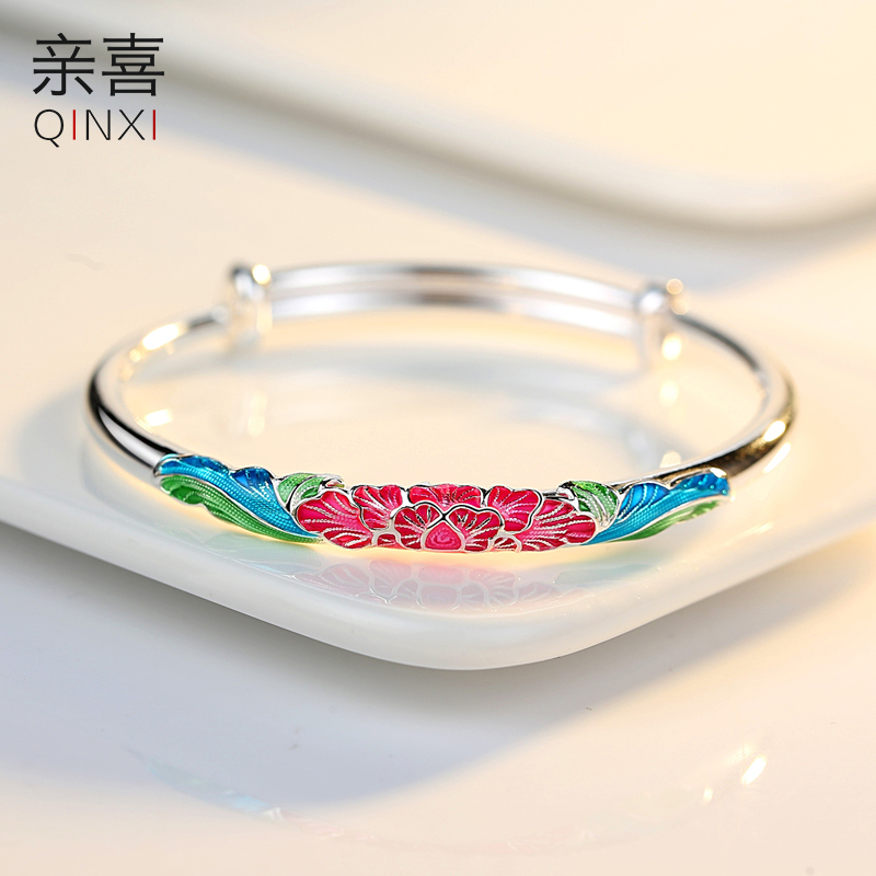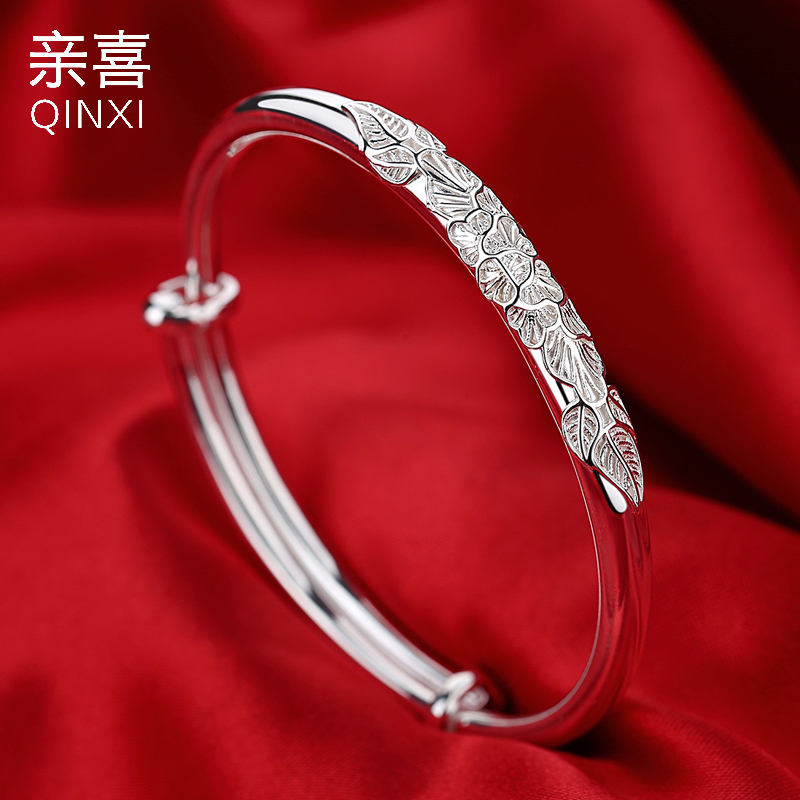 Silver bracelet female pure silver 999 foot silver opening ancient method solid bracelet for mother's elders Mother's Day birthday present