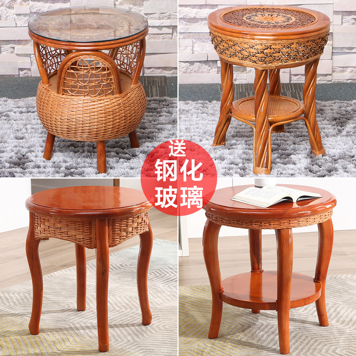 Natural true vine tea table rattan woven small tea table solid wood tea table living room table bedroom corner a few balcony tea table side a few