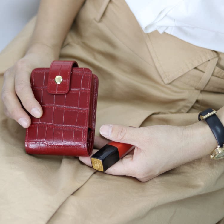 2020 Slave Pure Head Layer Crocodile Striped Cow Leather Lipstick Red Bag With Mirror Genuine Leather Cosmetic Bag Containing Bag-Taobao