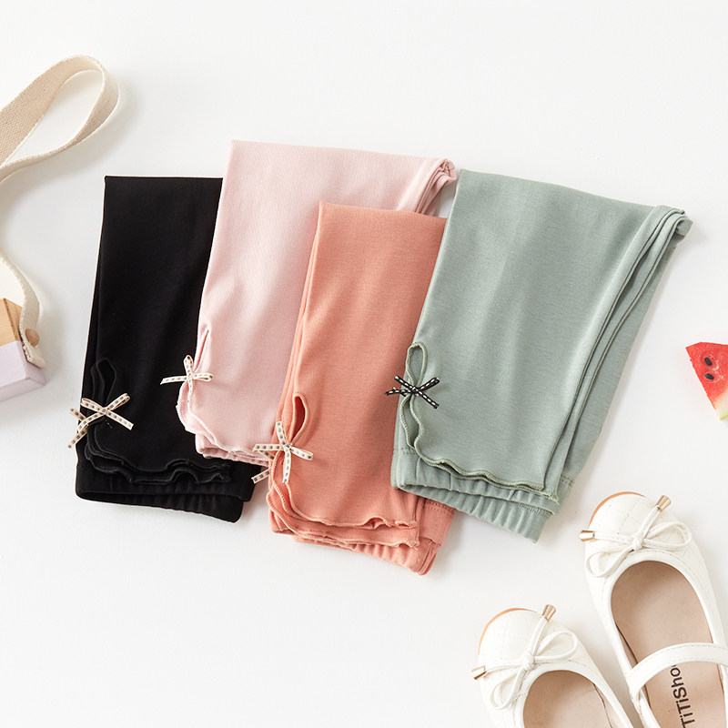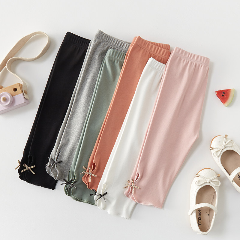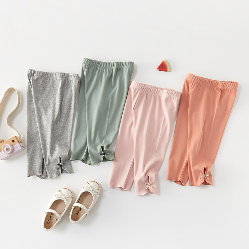 Girls leggings cotton thin summer children's cropped pants outside wear girls foreign stretch slim baby pants