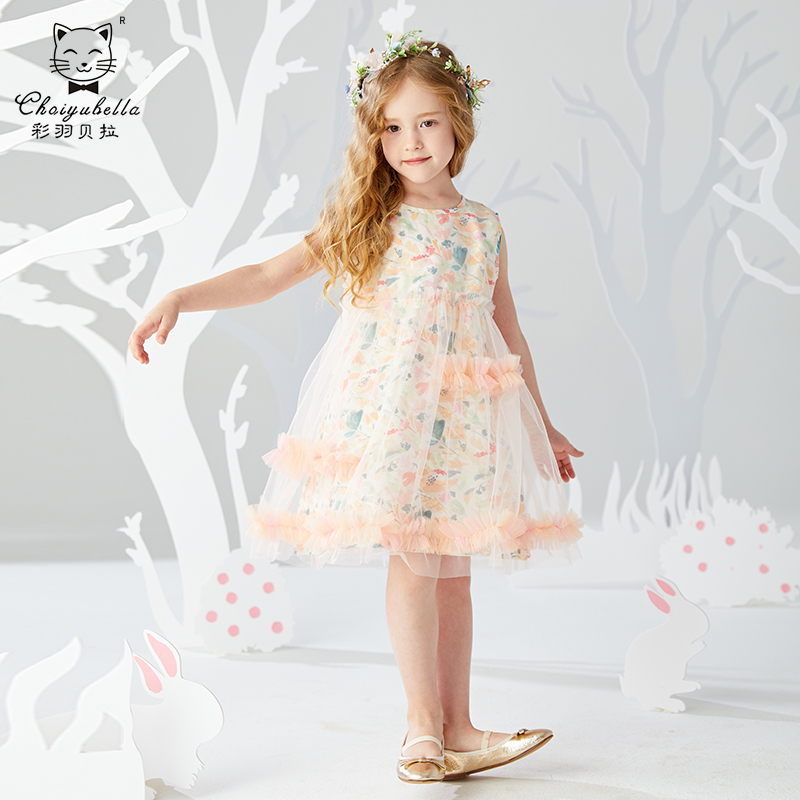 Children's clothing for girls 2021 summer dress new foreign children dresses summer yarn dress girl princess dresses slim fit