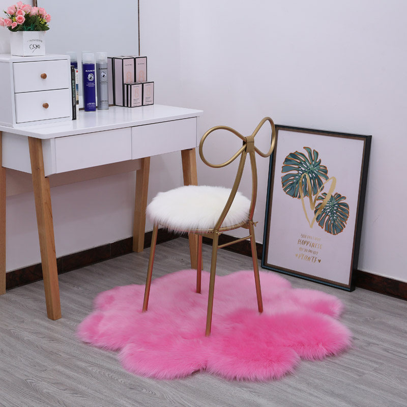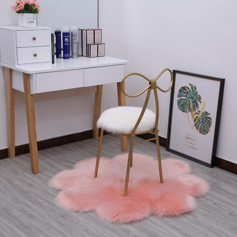 Imitation wool computer desk chair cushion Makeup Bench Chair Cushion Long Plush Mesh Red Iron Art Chair Cushion Round Stool Mat