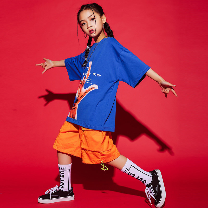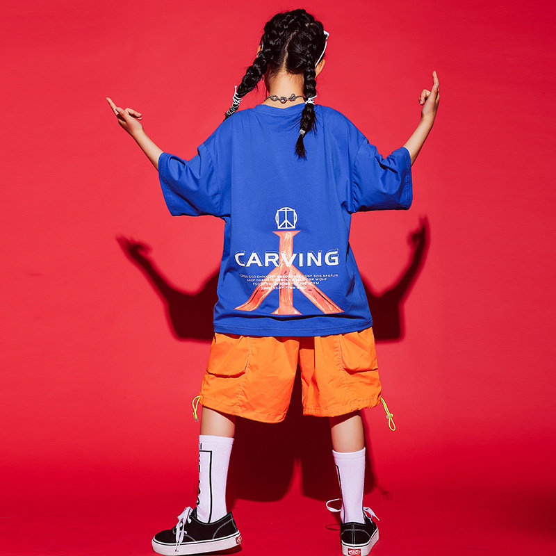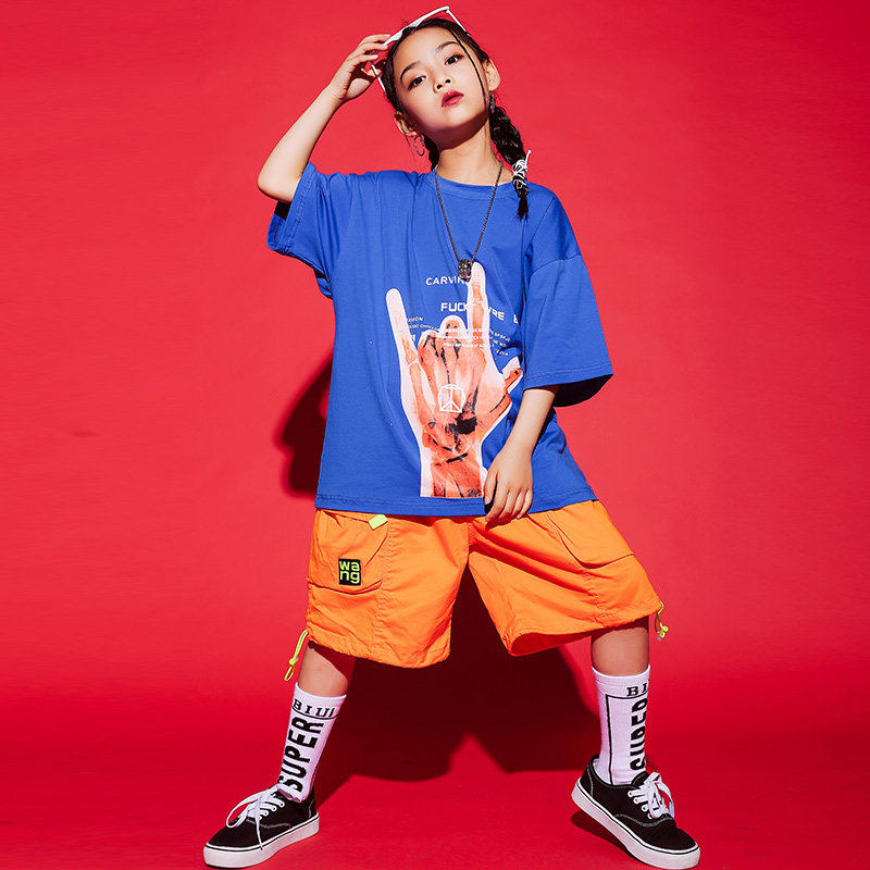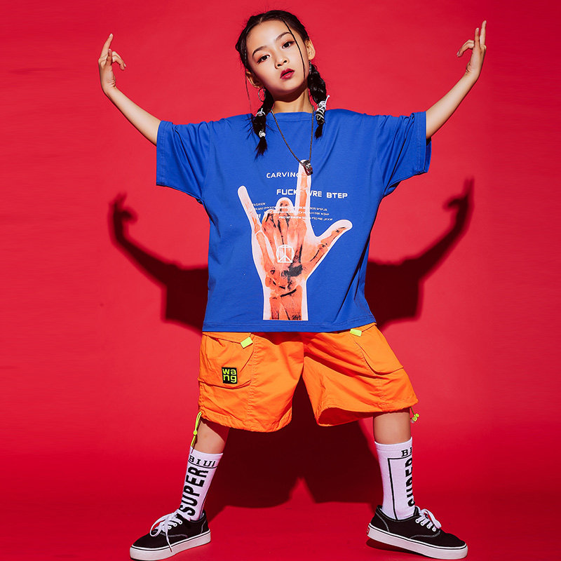 Girls hip-hop trendy clothes children's suits boys and girls hip-hop short-sleeved jazz dance costumes hiphop costumes summer clothes