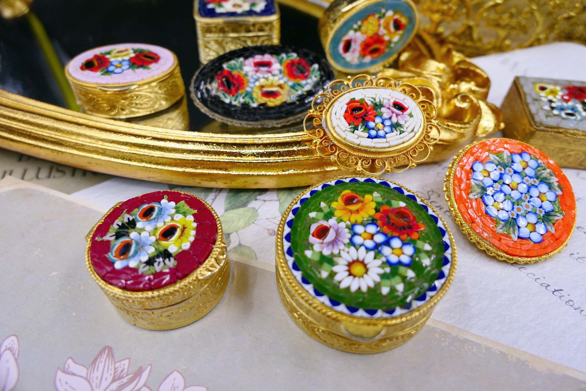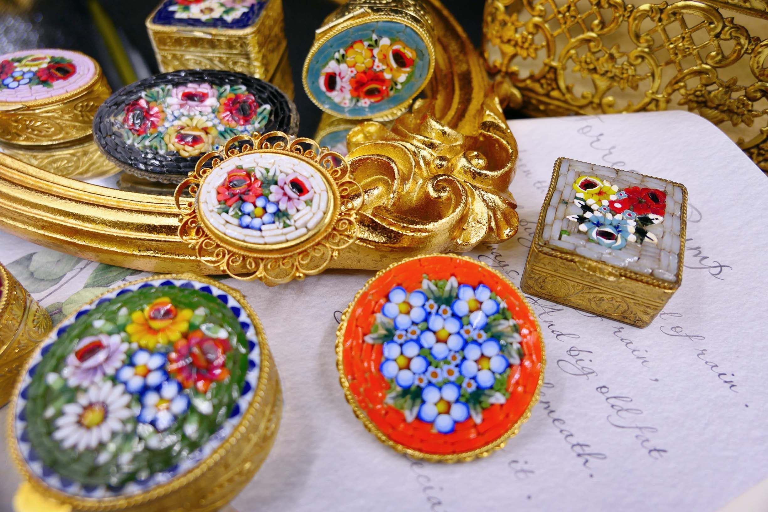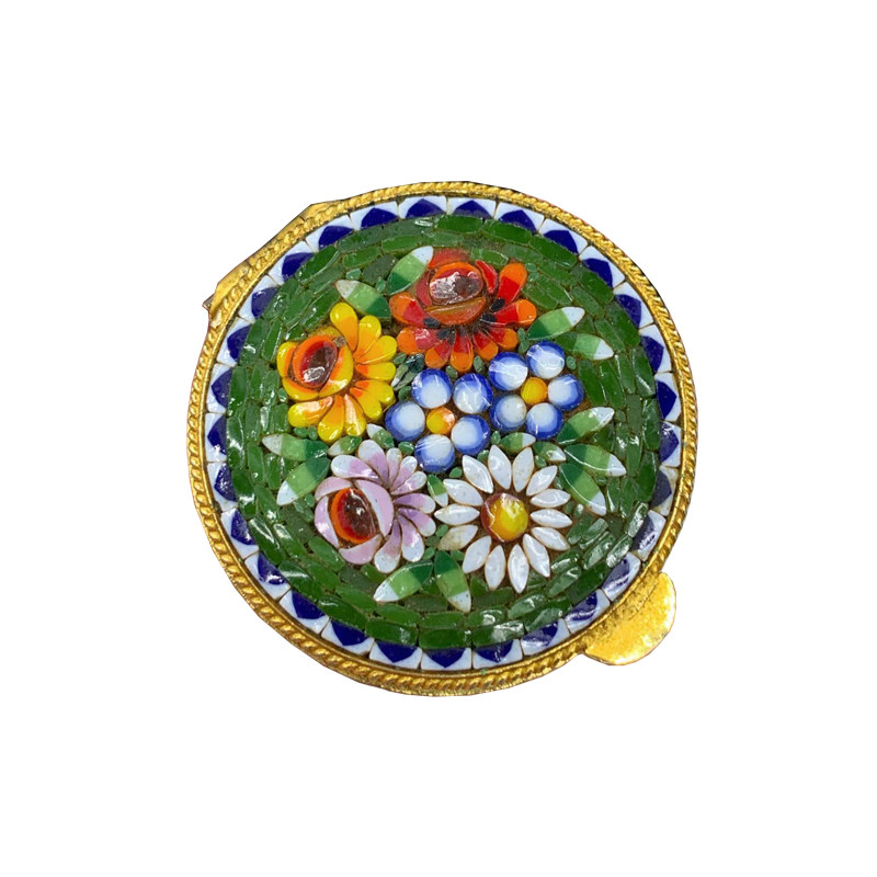 Vintage Italian mosaic antique brooch stained glass stone art collection handmade micro-inlaid jewelry box