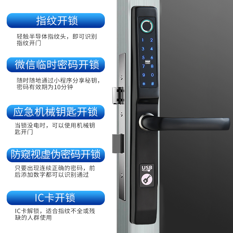 Yinchi aluminum alloy door fingerprint password lock narrow side broken bridge aluminum KFC door framed glass door waterproof smart lock