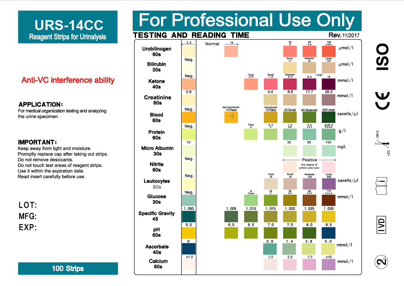 Export English neutral packaging URS-14 urine fast detection analysis test paper strips 14 items of cross-border e-commerce