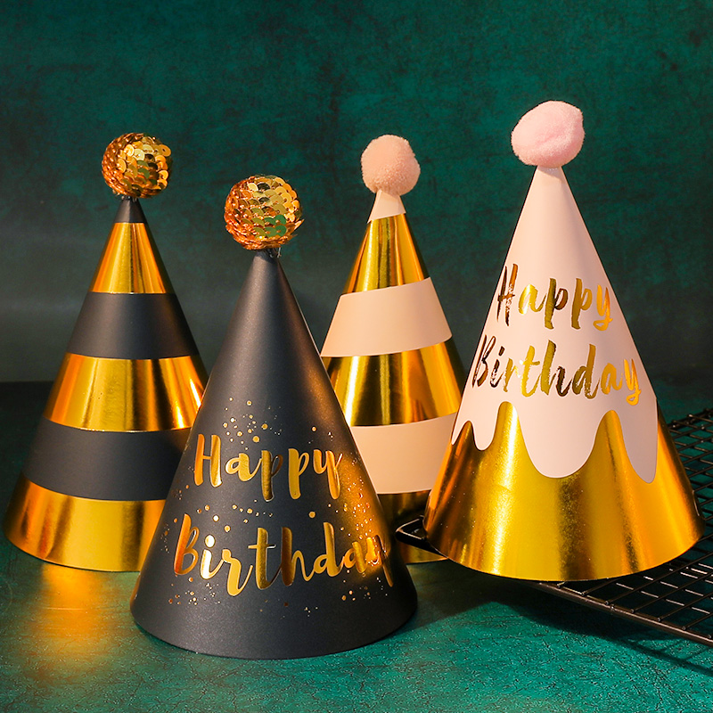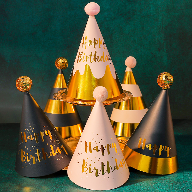 White Small Round Dot Birthday Hat Powder Big Round Dot Birthday Hat Black Gold Striped Birthday Hat Gold Bottom Powder Hi Leather Birthday Hat Gold Bottom Black Hi Leather Birthday Hat Gold Dot Black Birthday Hat Gold Pink Striped Birthday Hat Sequin Gold