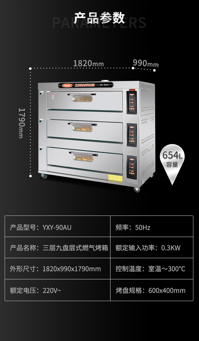 New Southern oven commercial large capacity three layers of nine plate gas furnace bread pizza furnace 90AU