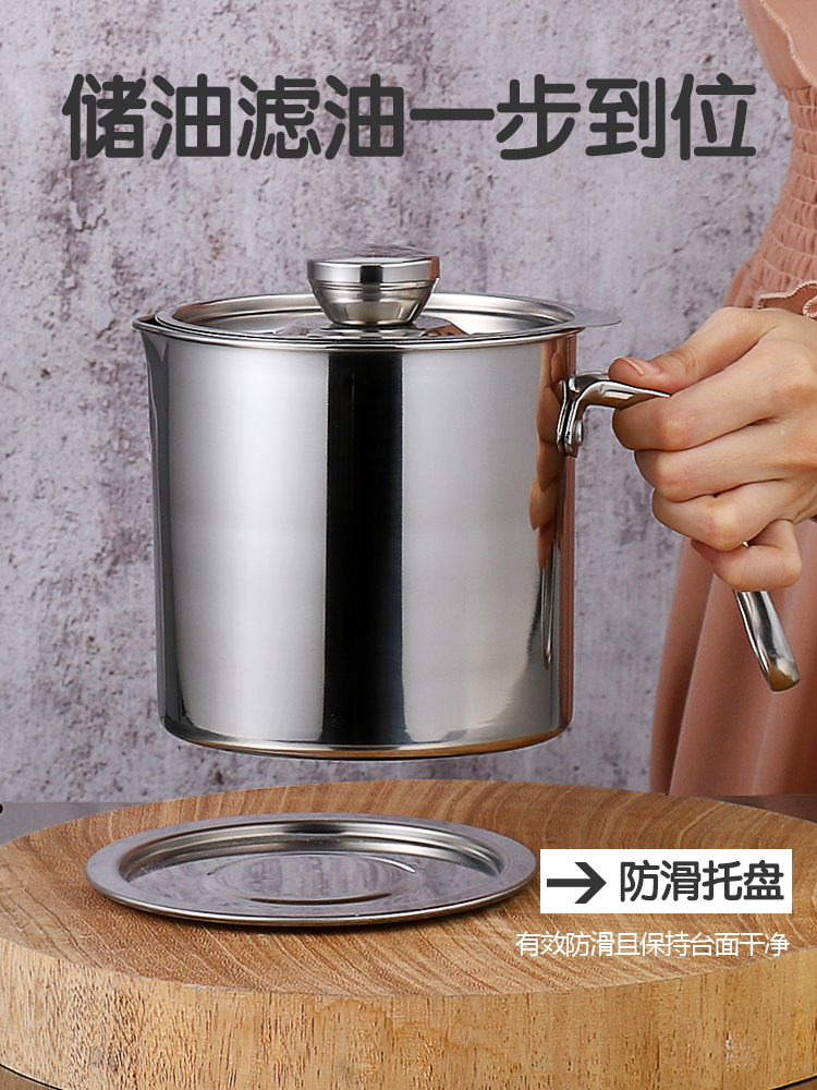 304 Oil Pot Stainless Steel filter Home with lid Oil Bottle Kitchen filter Oil Divine Instrumental Pig Oil Residue Oil Storage Tank