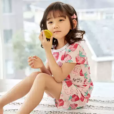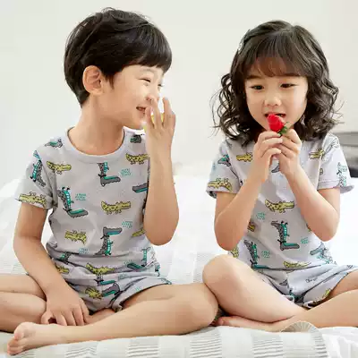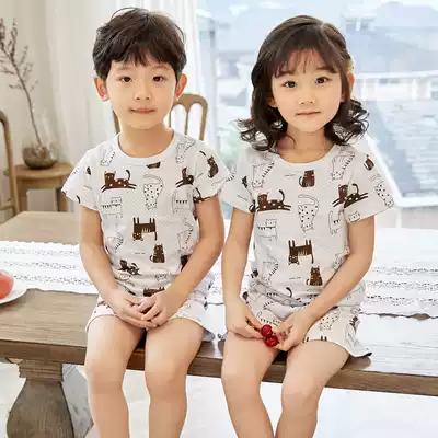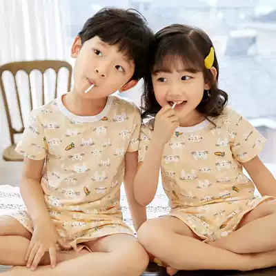 Children's cotton pajamas summer thin short sleeve set for boys and girls home clothes for children with ventilation holes air conditioning clothing