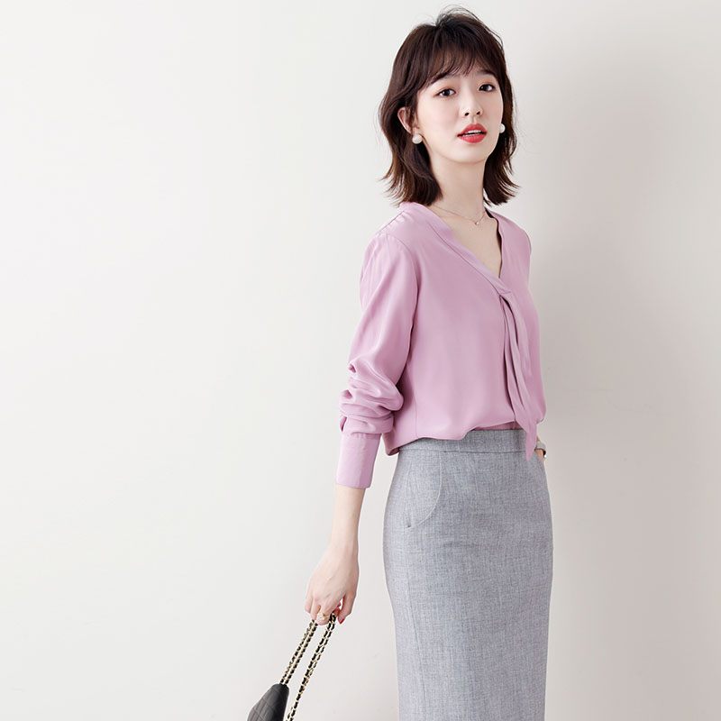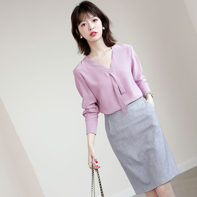 JOLIMENT triple acetate hooded shirt woman spring 2021 new high-end atmosphere elegant taro purple blouse with long sleeve female dress