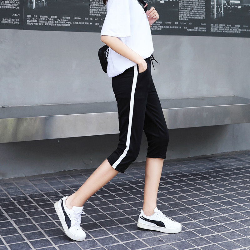 Sports pants women's spring and summer 2022 small elastic waist large size women's pants black ninth pants loose harem casual pants