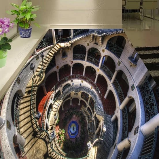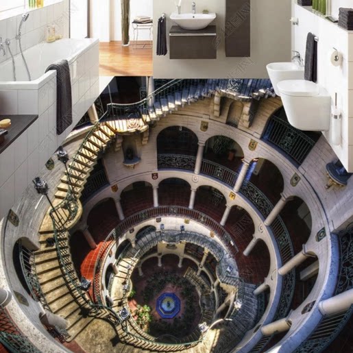 Floor leather three-dimensional floor painting living room toilet exhibition shopping mall personality creative floor stickers thrilling