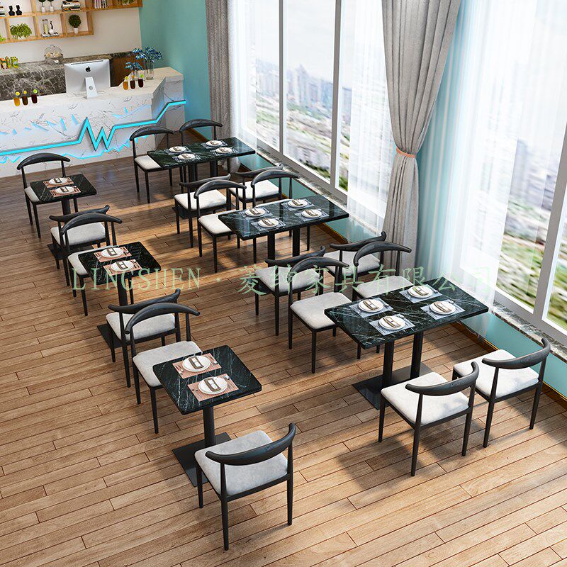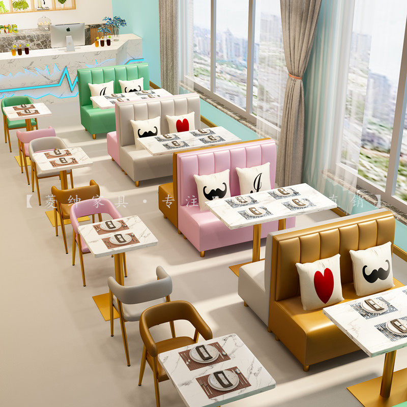 Internet celebrity milk tea shop table and chair card seat sofa double against the wall simple coffee burger dessert shop table and chair combination