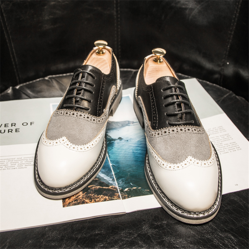 Retro casual men's leather shoes Korean version 100 lap Block leather shoes Inn Wind 100 hitch business trend parquet men's shoes