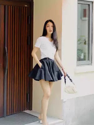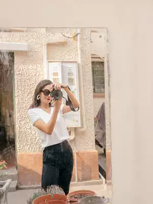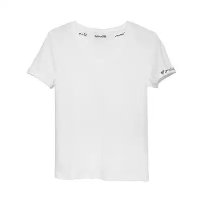 King Kong dance poetic flowers original design new embroidery letter V-Collar Cotton ultra-thin double-sided woven T-shirt
