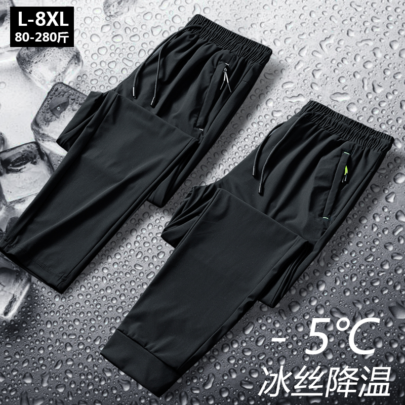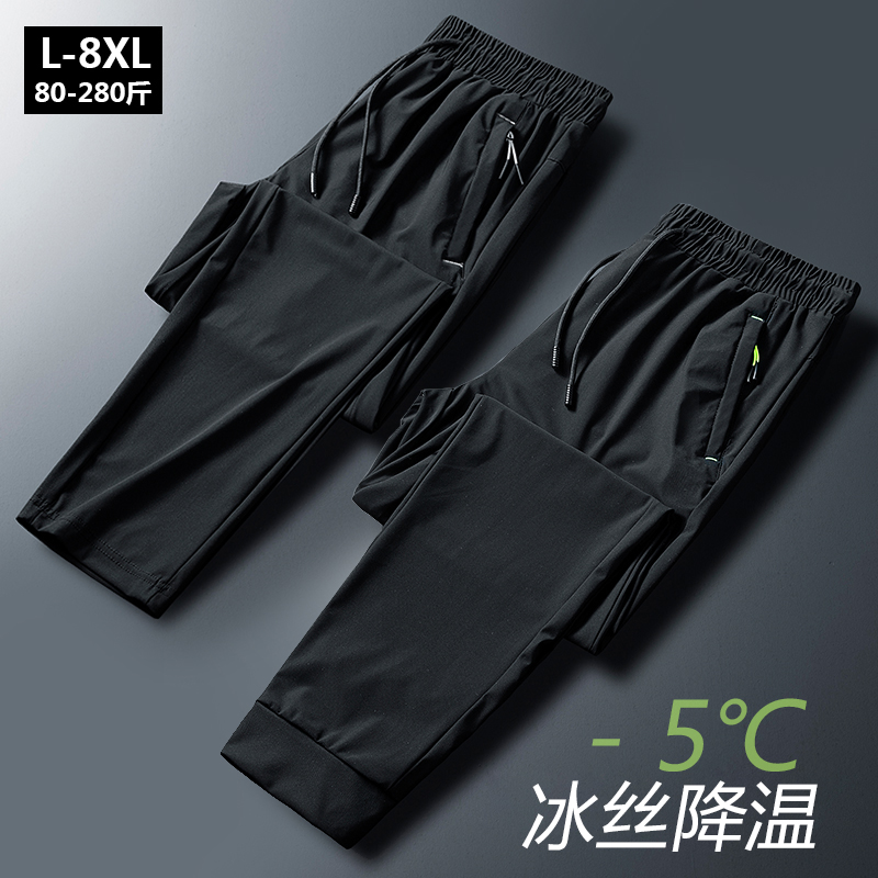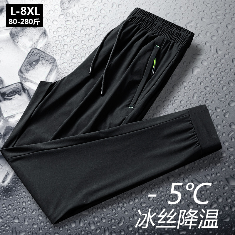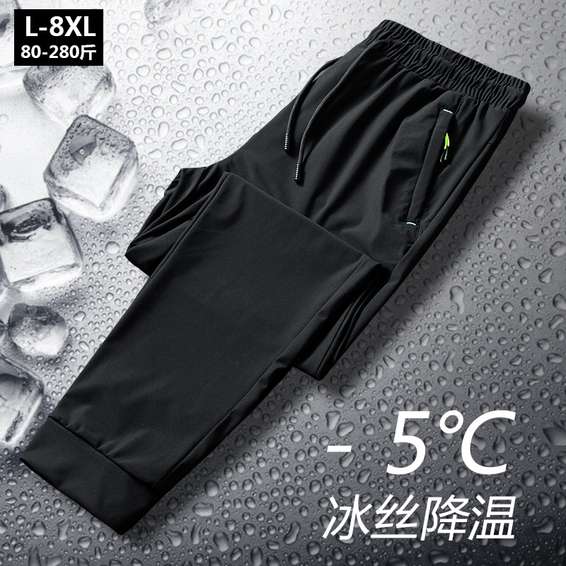Ice silk sweatpants men's quick-drying ultra-thin summer high-end silky air conditioning pants loose plus size casual drawstring feet