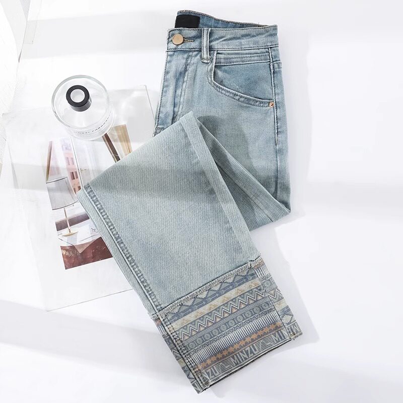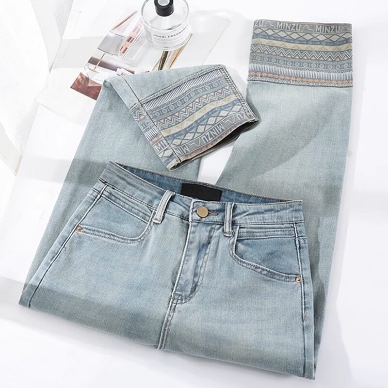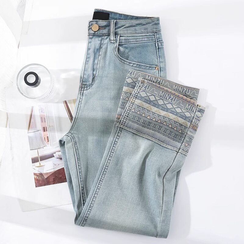 LeeDi Light Color Printed Curl Straight Drum Jeans Woman 2023 Summer thin section 90% Little subfaçades pants-Taobao