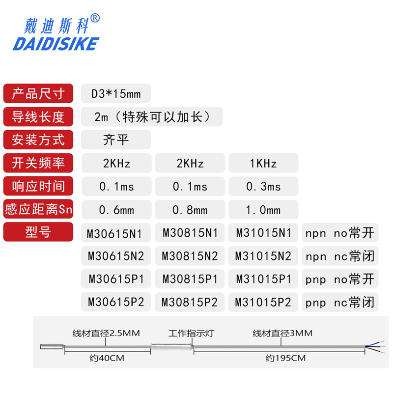 D3 separate threadless polished rod proximity switch length 15mm inductive small miniature induction switch DC DC