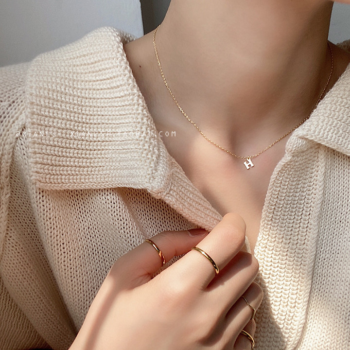 h letter necklace Female tide net red ins cold wind niche design sense Simple small lock decoration clavicle chain accessories